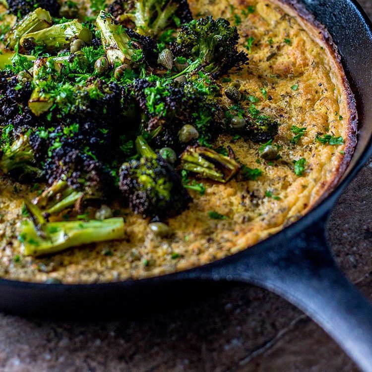 This Italian savoury pancake-like creation is easy to make and is deeply satisfying. Made with chickpea flour, each serving has about 17 grams of protein. Besides the broccoli, this recipe is versatile enough to experiment with a variety of toppings.