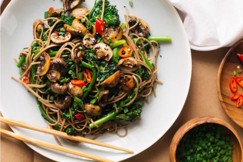 With over 22 grams of protein, this delicious looking vegan recipe has buckwheat soba noodles which is a great option for those with gluten allergies. The mushrooms are cooked in a way that they retain their shape and meatiness, and the whole dish itself is bursting with Asian flavours.