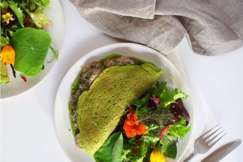 With over 20 grams of protein, these crepes are sneakily loaded with veggies. Using sprouted chickpeas and tapioca flour, this recipe is high in iron, and B and D vitamins. Easy to make, these crepes freeze well to save you time.