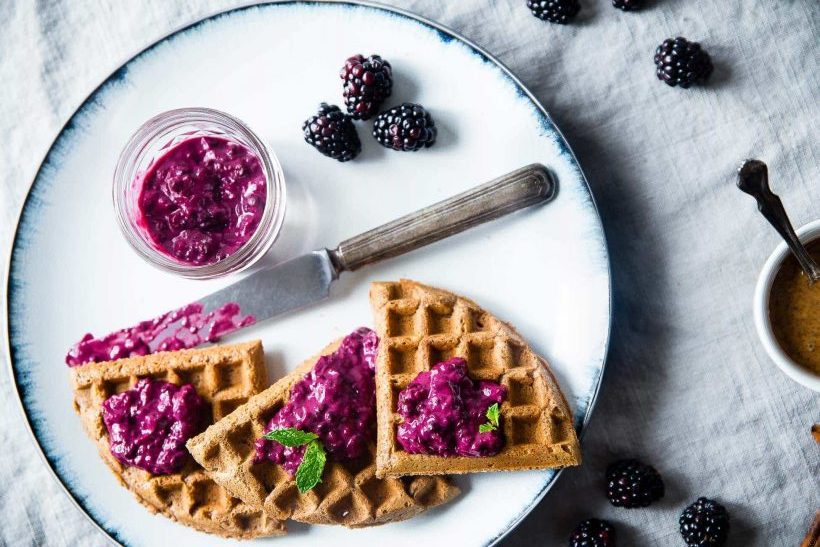 Ready in just 10 minutes, this small waffle serving provides 11.3 grams of protein. The berries pack in much-needed antioxidants that fight free-radicals damage, while the tapioca starch and coconut sugar keep things skinny.