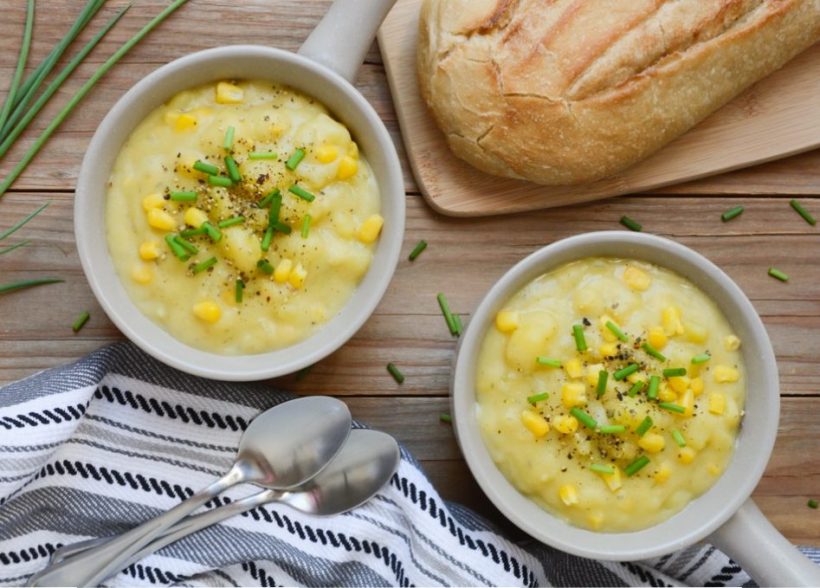 A creamy yet dairy-free bowl of goodness, this vegan chowder has 15.75 grams of protein a serving. Made with Yukon potatoes, organic corn, and veggie broth, this one-pot recipe goes great with a loaf of sourdough bread.