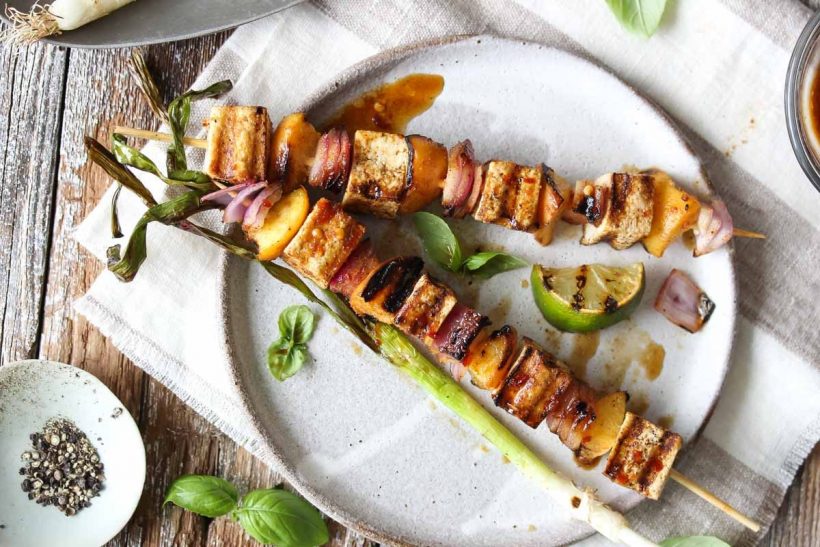 A great snack option—for barbecue days or boring at home cooking—these skewers have succulent tofu and peachy bits marinated in a sweet and spicy chili-lime sauce. Each skewer provides 12 grams of protein and endless flavour.